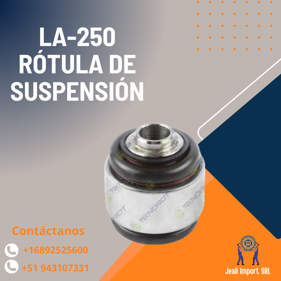 La rótula de suspensión es una pieza fundamental en el sistema de suspensión de un vehículo, ya que conecta la suspensión con la rueda, permitiendo que esta se mueva de manera independiente mientras el vehículo se desplaza. La pieza específica "LA-250" es utilizada en varios modelos de automóviles